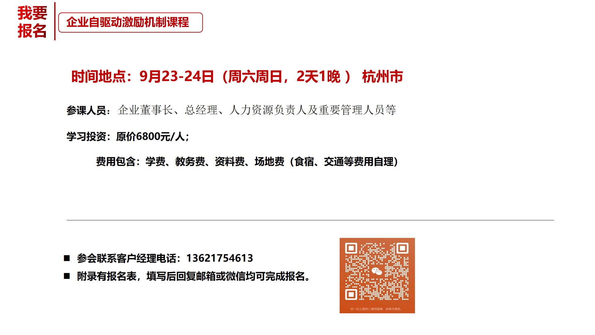 9月23-24日《企业自驱动激励机制》课程在杭州开班